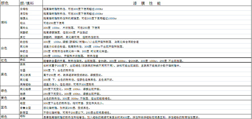 有机硅树脂首要的特性是其具有优异的耐热性能,在200℃甚至更高的温度下几乎不会分解,可用于各种耐热漆的制备,其耐热绝缘等级可达H级。例如,使用有机硅树脂作为基料,添加铝粉的银色漆可在400~600℃使用下长期使用,可用于烟囱、蒸汽管、排气管、燃气装置、炉具、烤箱、电暖炉、化工设备、锅炉、发动机、发电机、电气设备、散热器等。