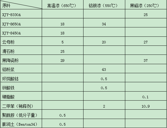 涂料配制:先将颜料配制成色浆(可采用三辊研磨机、球磨机、胶体磨等设备),配制的色浆应均匀无颗粒状物。然后将各个组分按表中规定的量充分搅拌,混合均匀。过程中可用稀释剂调整涂料的粘度。