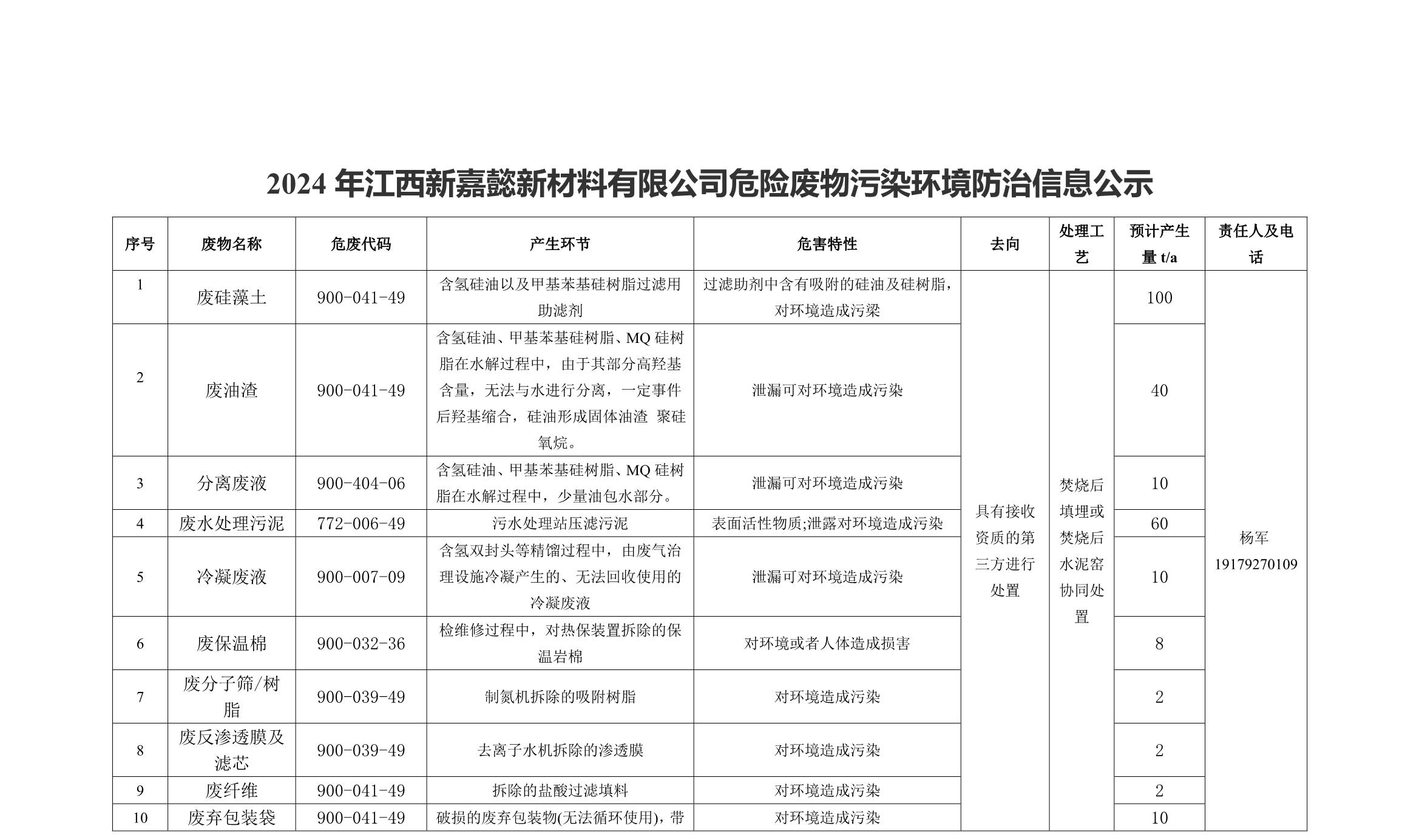 2024年江西PA集团新材料有限公司危险废物污染环境防治信息公示