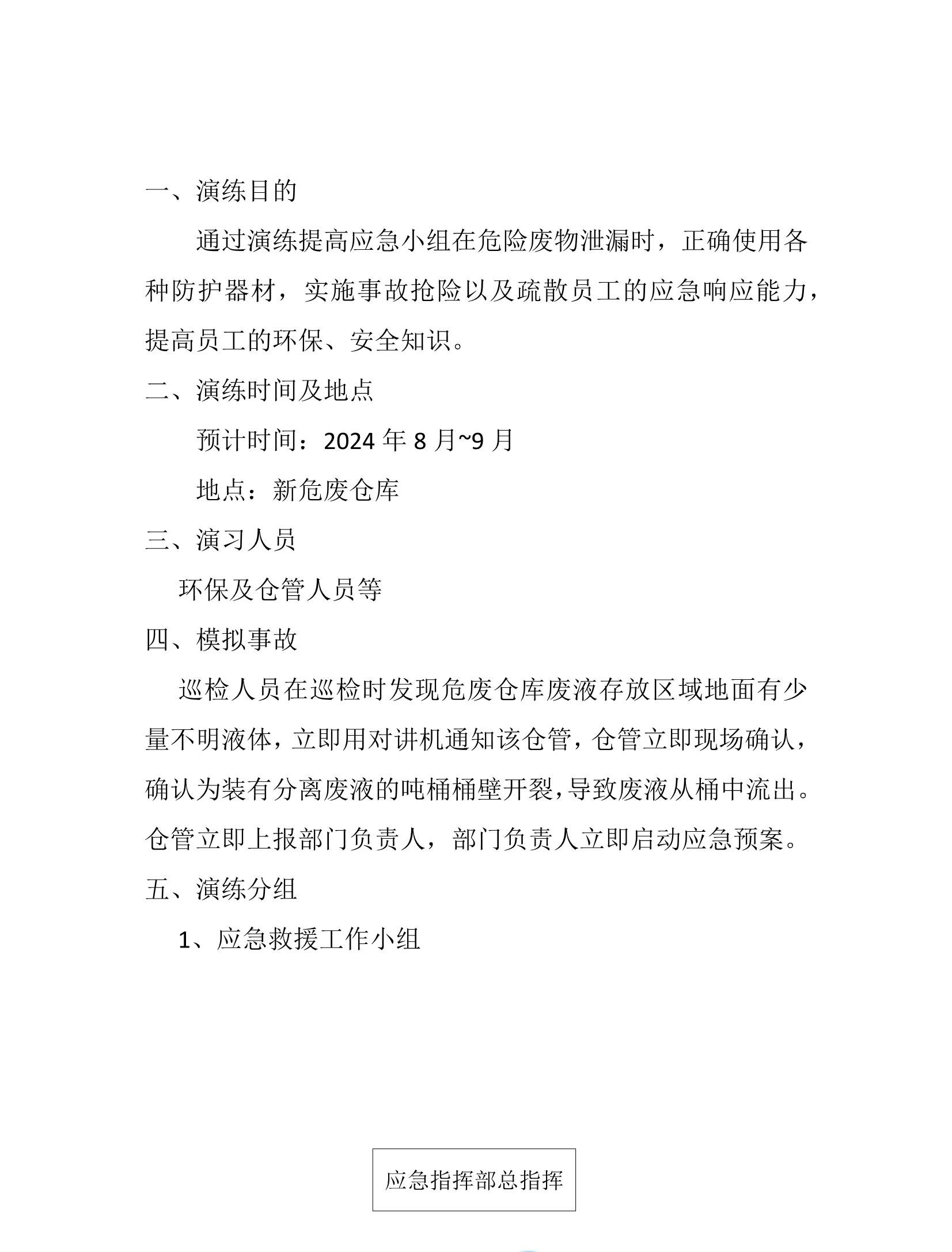 江西PA集团新材料有限公司 2024年危险废物泄漏应急演练方案