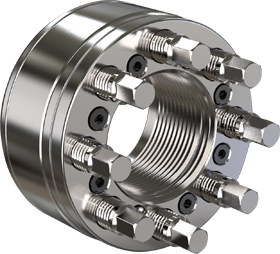 超级螺母通过多颗顶伸螺钉的共同作用,产生所需的预紧力,从而达到拉伸螺杆的目的,以紧固设备工件。