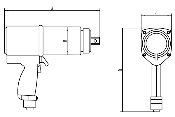 | 规格型号 | 驱动方头 (英寸) | 扭矩范围 (NM) | 转速(RPM) | A (mm) | B (mm) | C (mm) | D (mm) | 噪音 (db) | 重量 (kg) | |