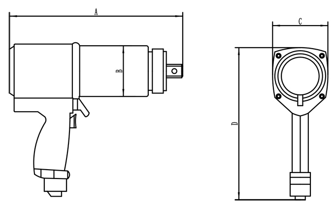 规格型号 驱动方头 (英寸) 扭矩范围 (NM) 转速(RPM) A (mm) B (mm) C (mm) D (mm) 噪音 (db) 重量 (kg)