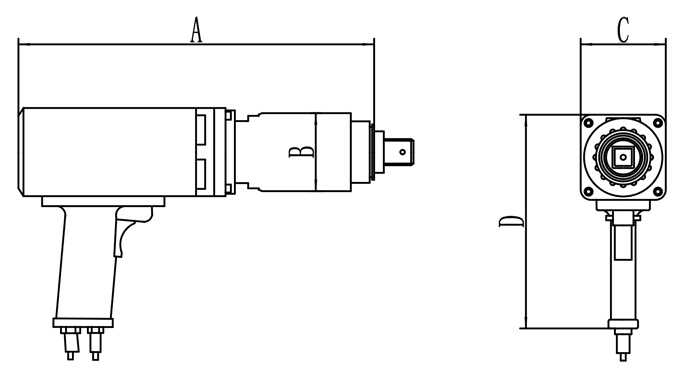 | 规格型号 | 驱动方头 (英寸) | 扭矩范围 (NM) | 转速(RPM) | A (mm) | B (mm) | C (mm) | D (mm) | E (mm) | 噪音 (db) | 重量 (kg) | |