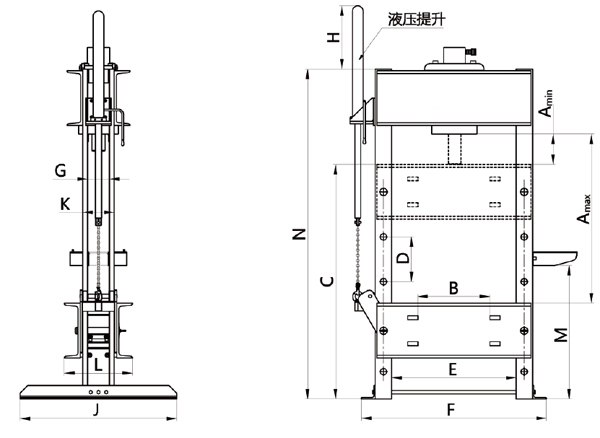 H型液压压床二维调节设计, 可上下移动压板以及左右移动液压千斤顶。