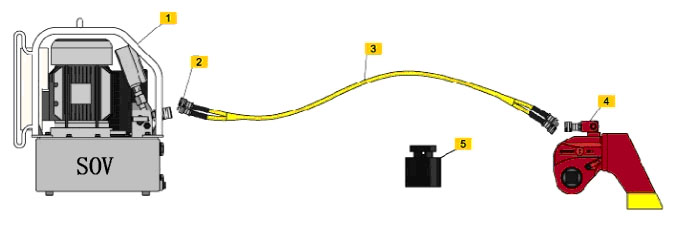 配置一、1台驱动型液压扳手+1台液压扳手专用泵+2根液压软管+套筒