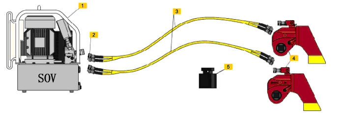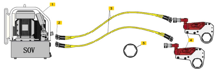 液压扳手作为一种常用的螺栓拆卸预紧工具,在日常使用中除了单台使用外,有时候会需要2台或更多台液压扳手一起使用。由于液压扳手是通过液压泵提供动力源,如何使扳手和泵站更好的衔接,是我们改篇将要重点讲解的地方。